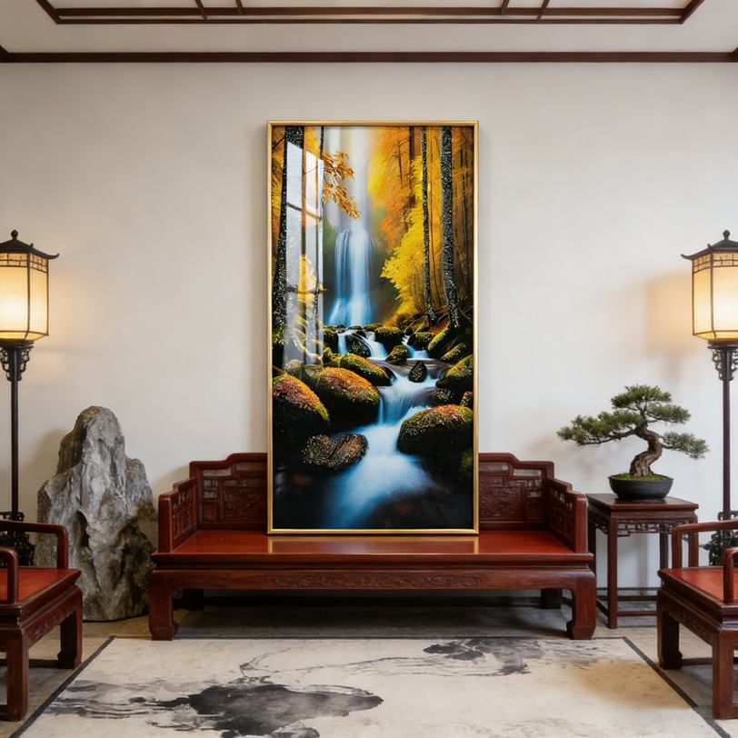 Peinture LED en porcelaine cristalline HD personnalisée de luxe, motif Forêt et Ruisseau, Décoration Murale pour Salon, Vente Chaude