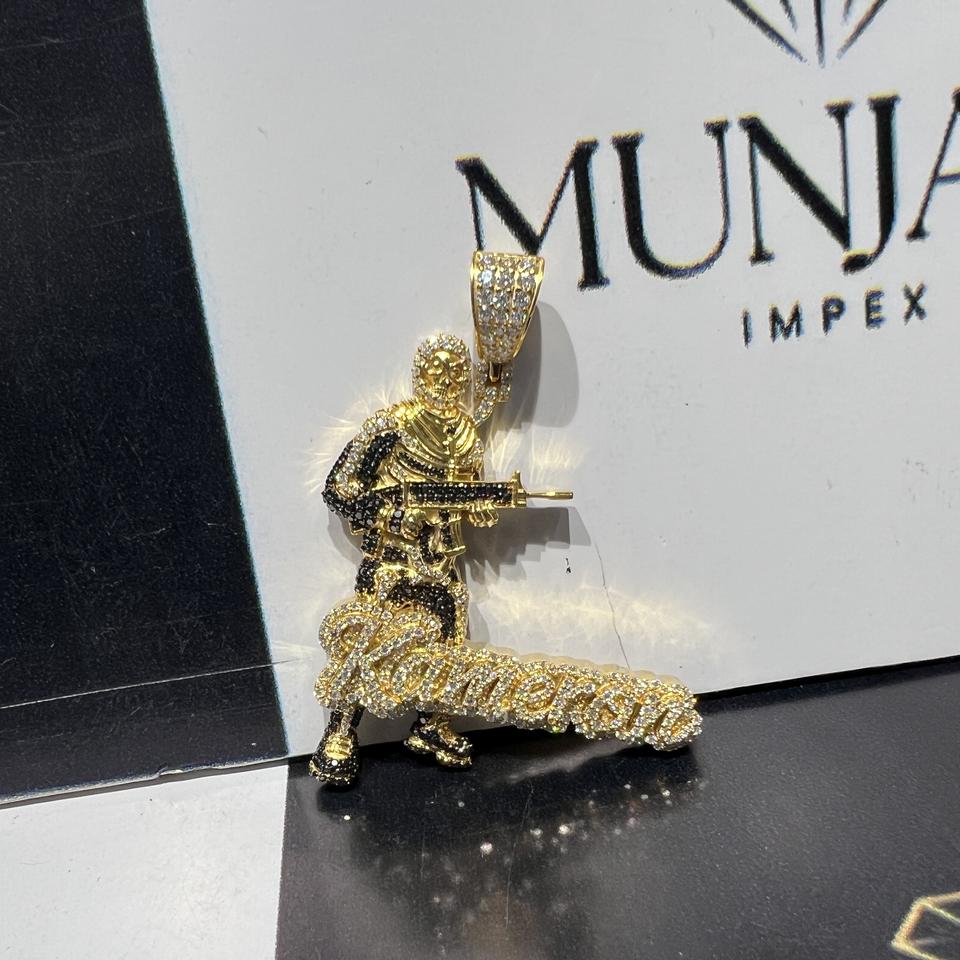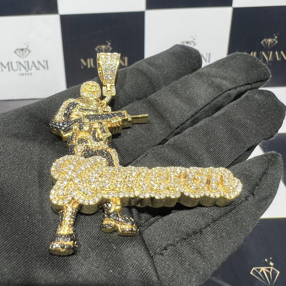 Pendentif Hip Hop de Luxe Personnalisé avec Nom pour Homme, Diamant VVS Créé en Laboratoire Certifié IGI, en Argent Sterling 925 Plaqué Or, pour Fête