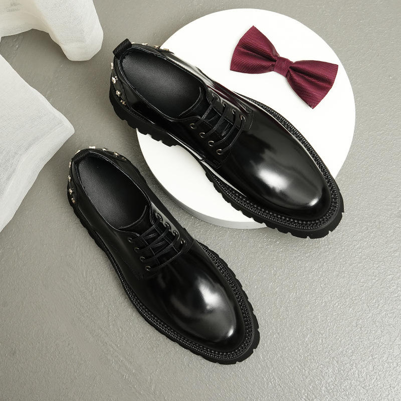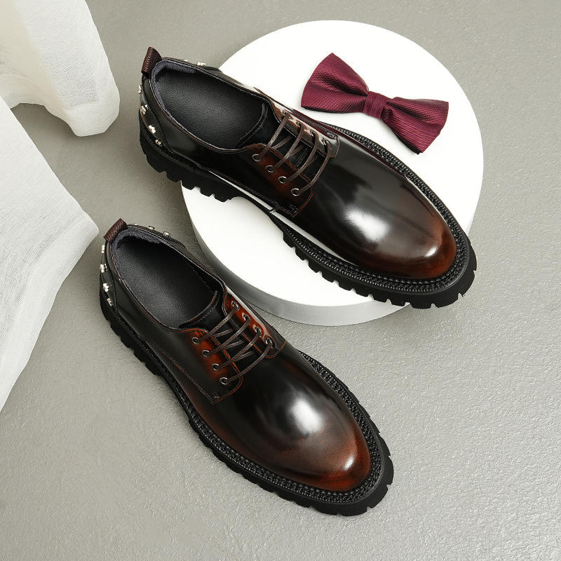 Chaussures Derby pour hommes en cuir véritable, personnalisées, tendance, haut de gamme, polies, polyvalentes, élégantes et respirantes