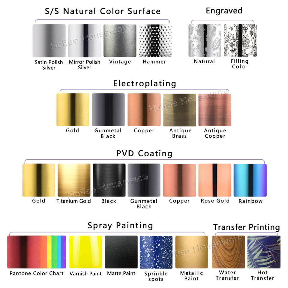 Surface:UV Printed; Etching Pattern; PVD Coating.