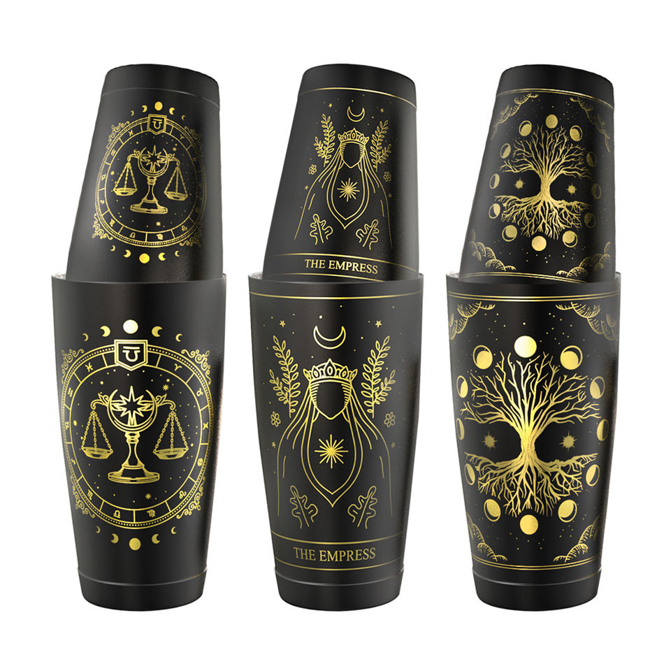 Signe du zodiaque Tarot personnalisé de luxe 28oz Boston Shaker Impression UV Boîtes pondérées Martini Cocktail Shaker pour Bar Club Cadeau