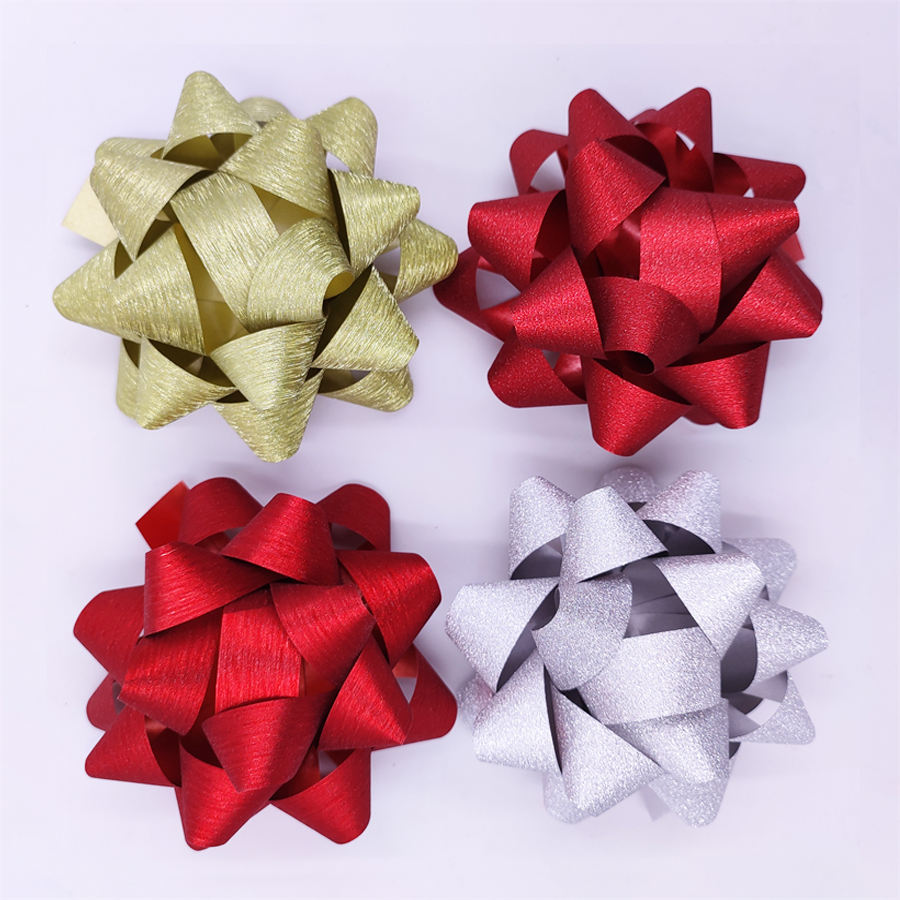 Nœud de ruban en plastique personnalisé, de luxe pour mariage, 10 pièces, cadeau en maille rouge, nœuds étoiles de 3 ou 4 pouces, ruban de dessin