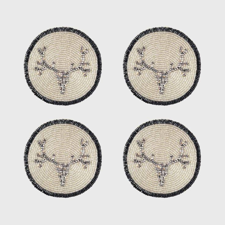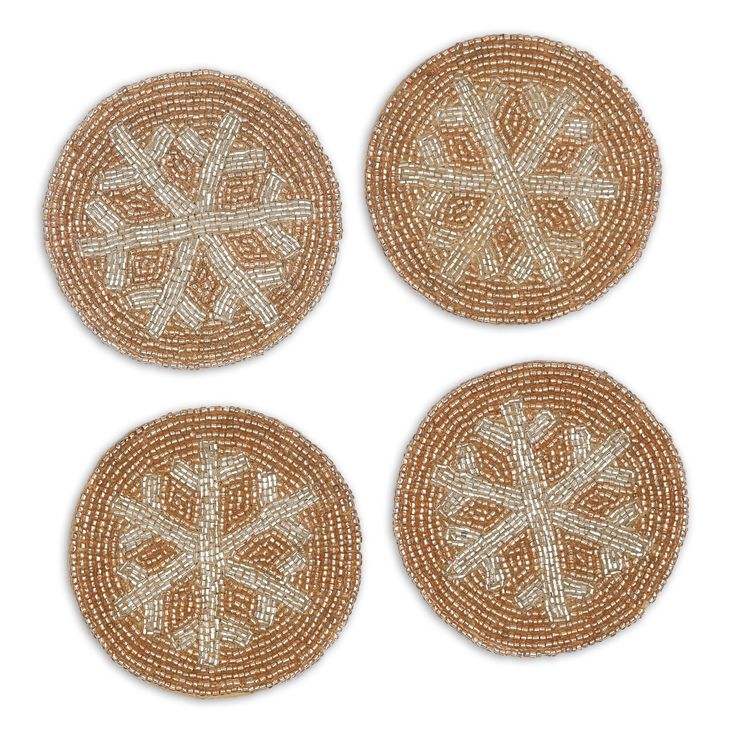 Forme ronde de sous-verre de broderie perlée or et ivoire de personnalisation de luxe avec un look de quatre ensembles de qualité supérieure et un beau design fait à la main