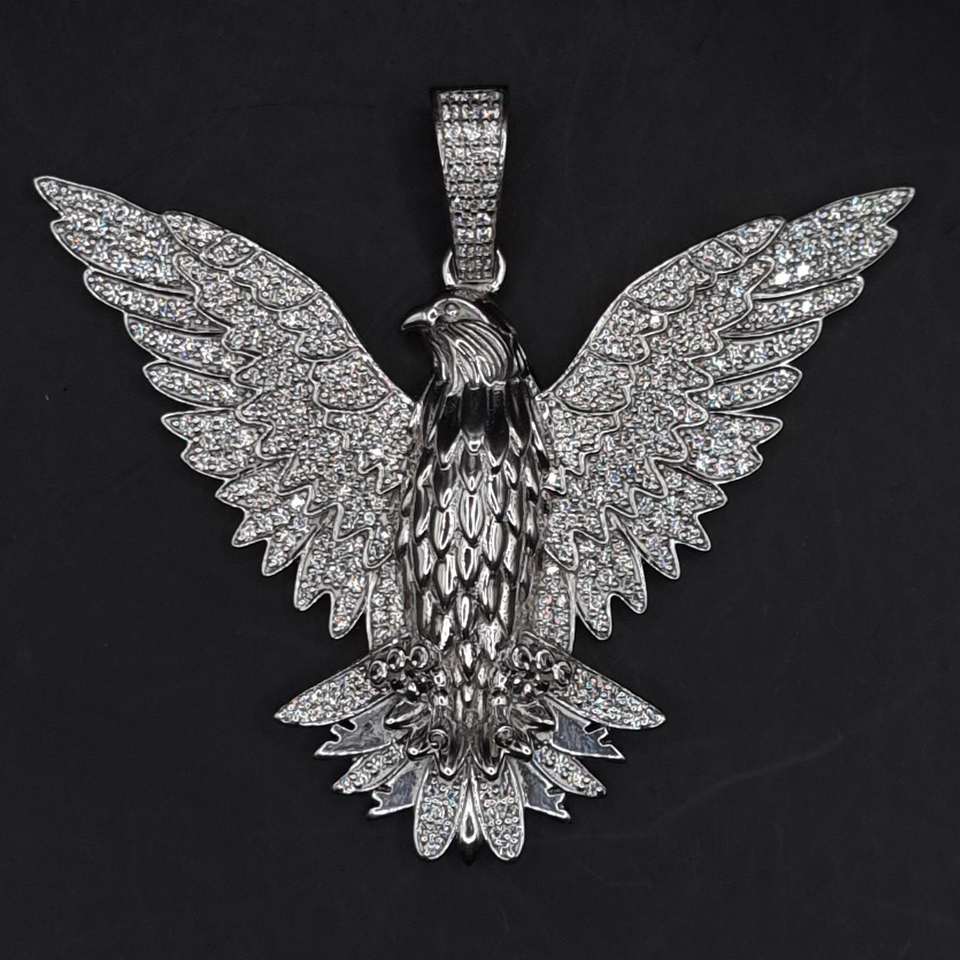 Luxury Cute Christian Iced Out Moissanite Eagle Wing Pendant Silver Hip Hop Statement