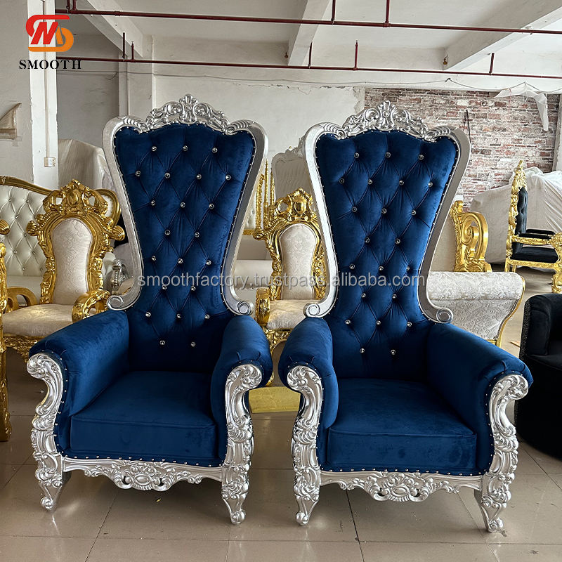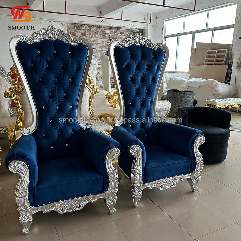 Nom du produit:Fauteuil de mariage bleu foncé à dossier haut avec semelle.