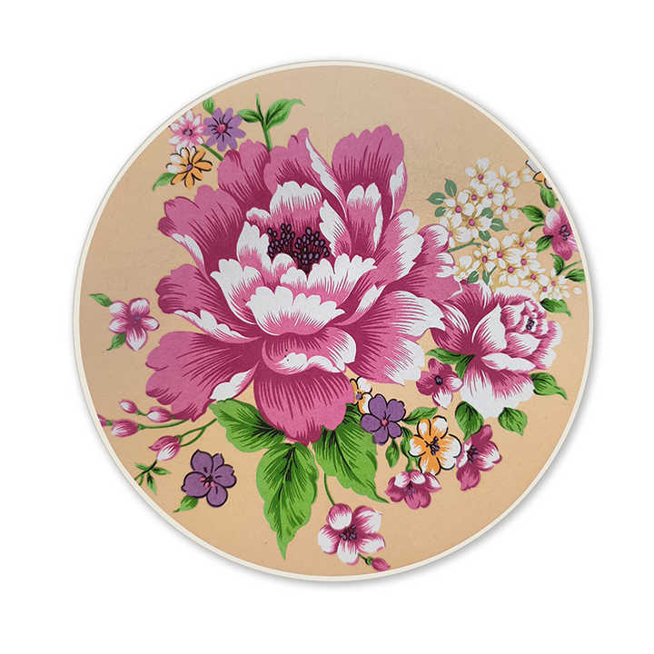 Luxury Decorative Cup Coasters Oriental Peony Print Round Drink Mats