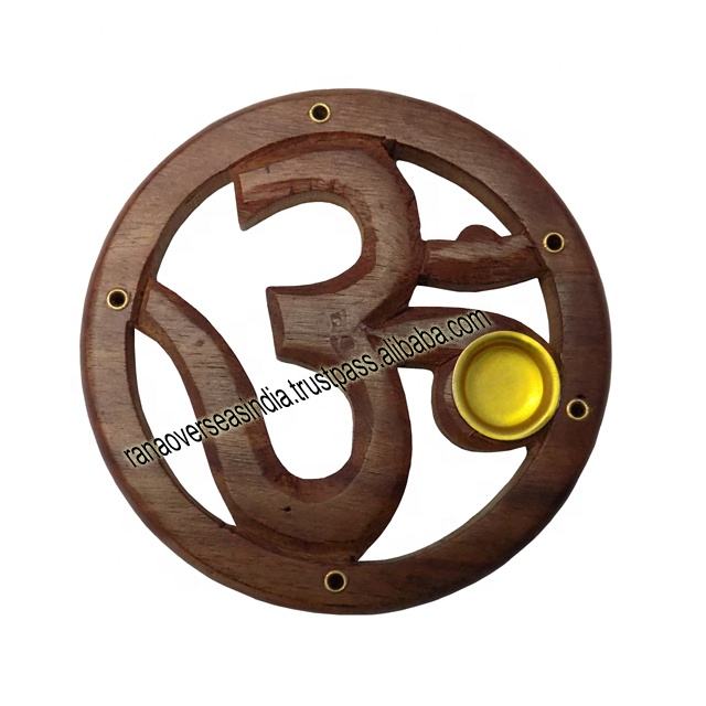 Product name:Om Carving Wooden Incense Burner Round Plate Holder