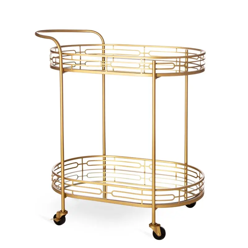 Chariot de service décoratif de luxe, fait main, style industriel, pour boissons, écologique, style américain, plaqué, sûr