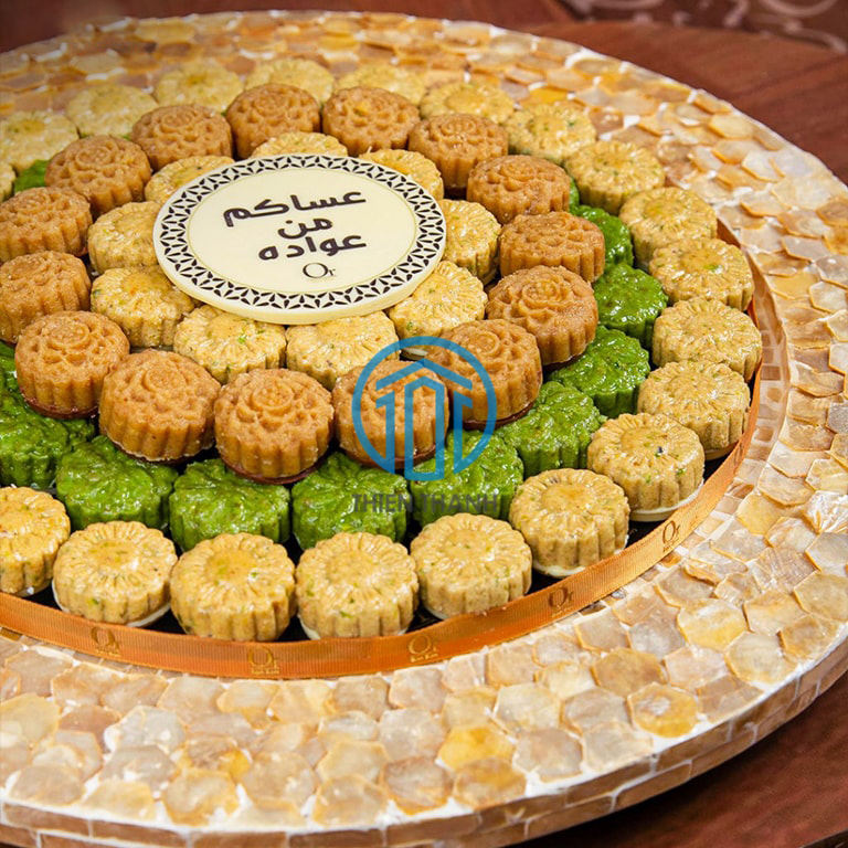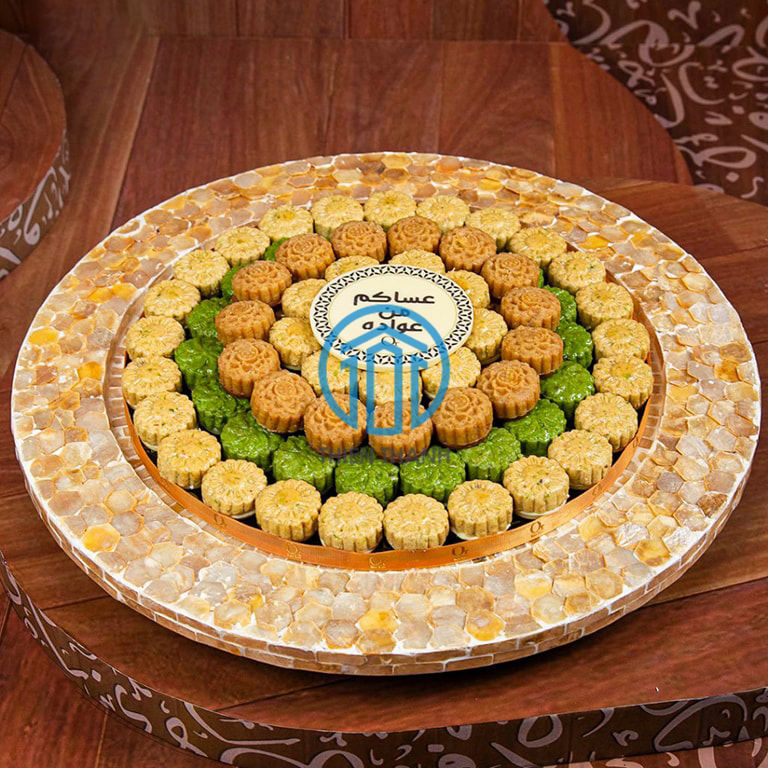 Plateau de service décoratif de luxe avec bonbons à la pistache assortis Boîte cadeau artisanale pour les vacances, l'Aïd ou les occasions spéciales