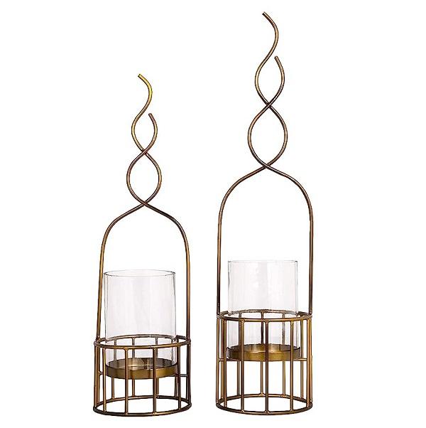 Design de luxe Bougeoir Décoratif Éclairage À La Maison Décor S/2 Laiton Cône En Métal Bougeoir Ensemble Haute Qualité Métal Porte-Verre