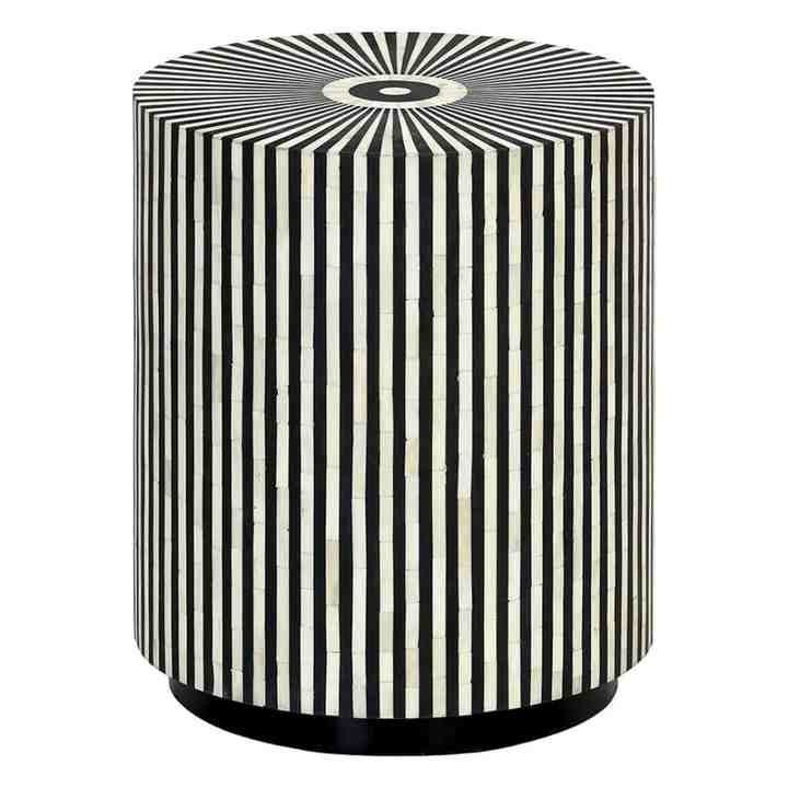 Tabouret de luxe en incrustation d'os avec motif géométrique, tabouret décoratif artisanal pour le salon, la chambre à coucher et la décoration de bureau