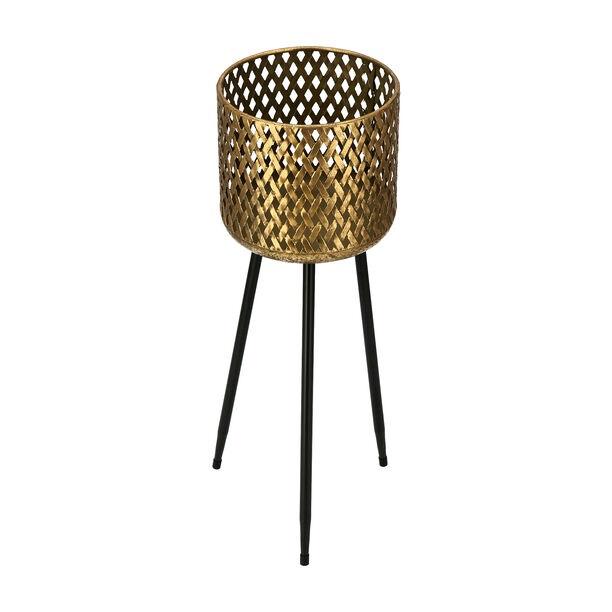 Jardinière de luxe au design floral avec support métallique, couleur et taille personnalisables, pour usage extérieur, avec doublure pour plantes incluse - 27x27x64.5 CM