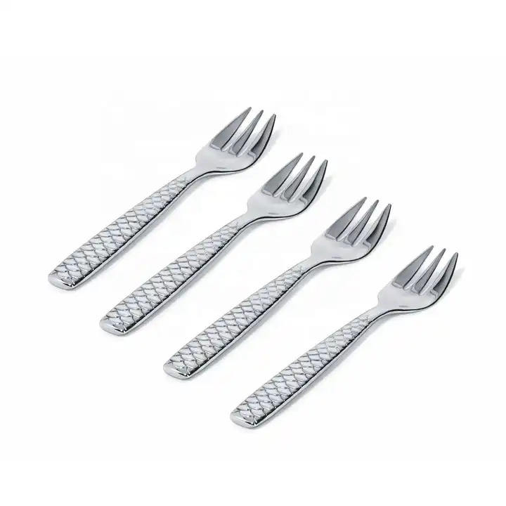 Ensemble de fourchettes au design de luxe, vaisselle de mariage en acier inoxydable plaqué argent, ensemble de fourchettes avec poignée au design étonnant
