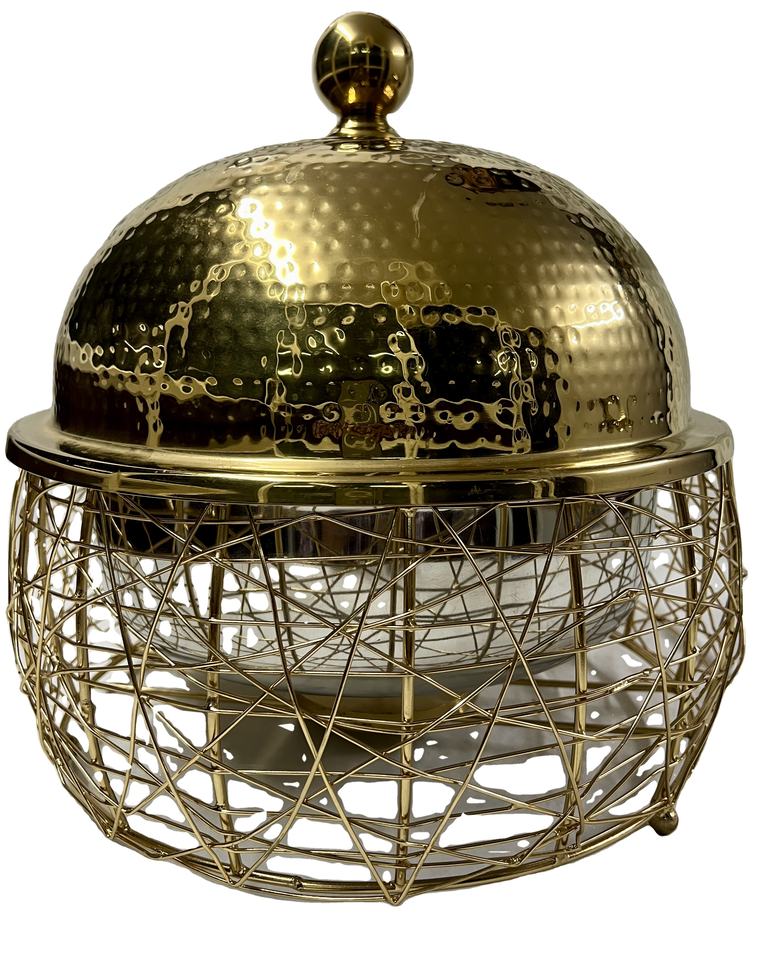 Casserole de vaisselle en métal couleur or au design de luxe en acier avec couvercle chauffant la marmite filaire de haute qualité compatible avec l'induction