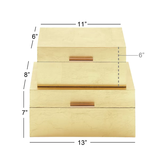 Boîte à bijoux en bois plaqué or poli moderne de luxe avec un design personnalisable, cadeau artisanal pour les fêtes