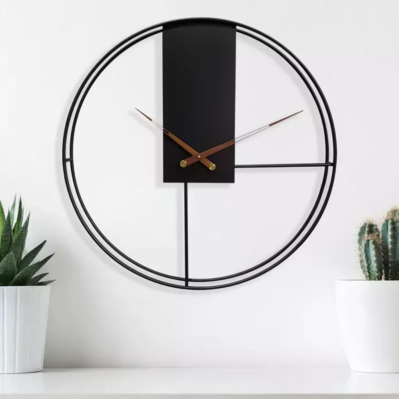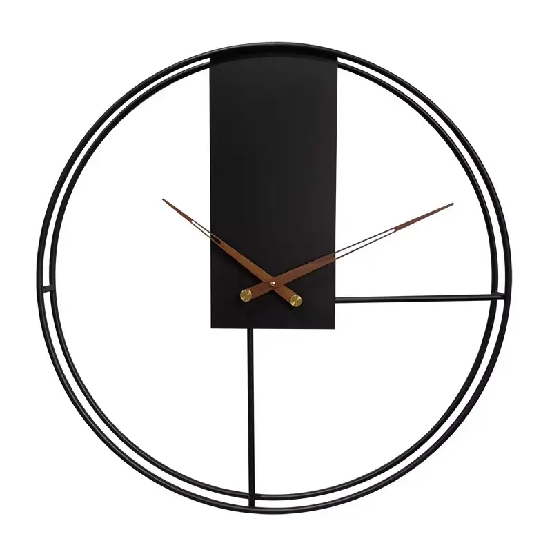 Horloge murale en fer moderne de luxe de forme ronde avec finition noire, affichage silencieux d'aiguilles à quartz pour le salon, art mural décoratif