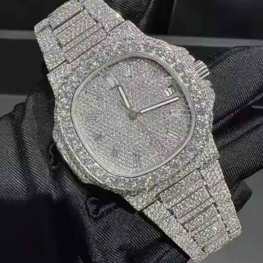 Montre Hip Hop de qualité supérieure entièrement sertie de diamants, mouvement japonais, affichage analogique, cadran en verre, cadeau spécial Saint-Valentin