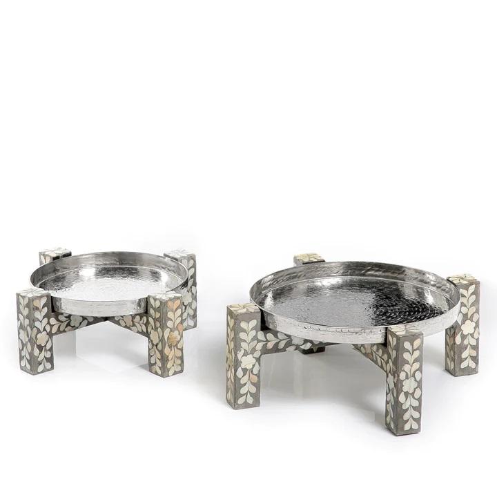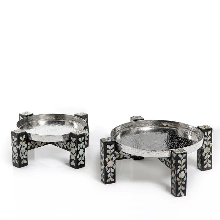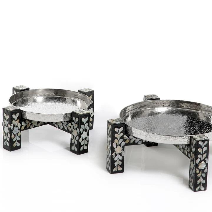 Plateau de service à gâteaux en métal au design de luxe, présentoir pour centre de table de mariage, plateau de service pour aliments et collations avec support en bois