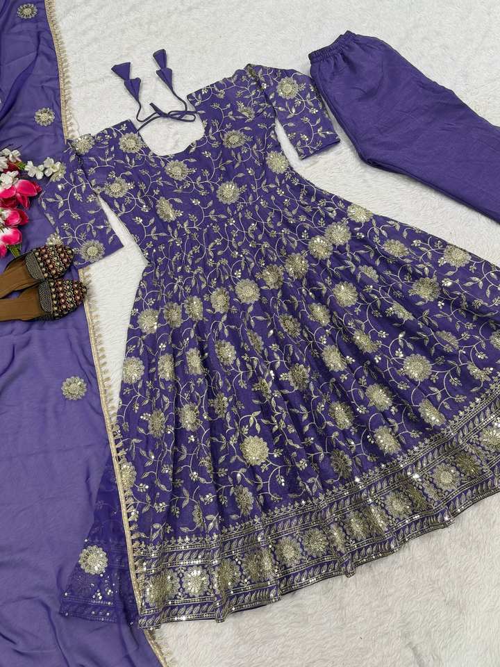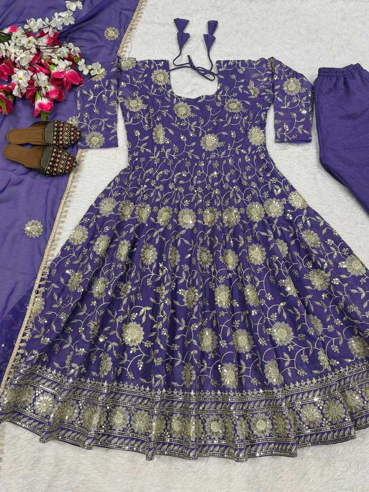 Design luxueux présentant un nouveau costume Anarkali de créateur dans un style élégant et moderne