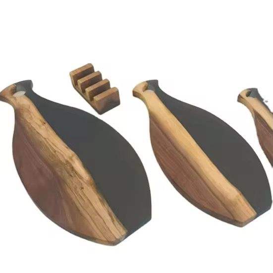 Grande planche à découper rectangulaire de luxe multifonctionnelle en bois et résine pour fromage, ustensiles de cuisine et vaisselle personnalisés