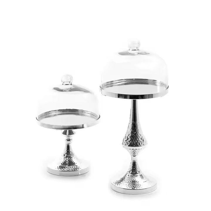 Support à Cupcake en Métal de Couleur Argent Design de Luxe pour Anniversaire Décoratif Ensemble de 2 Support à Gâteau avec Couvercle
