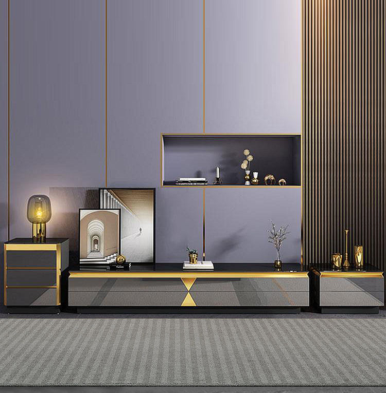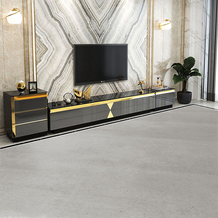 Ensemble de supports TV en cuir et en marbre, table basse, de luxe, design moderne, meubles de salon