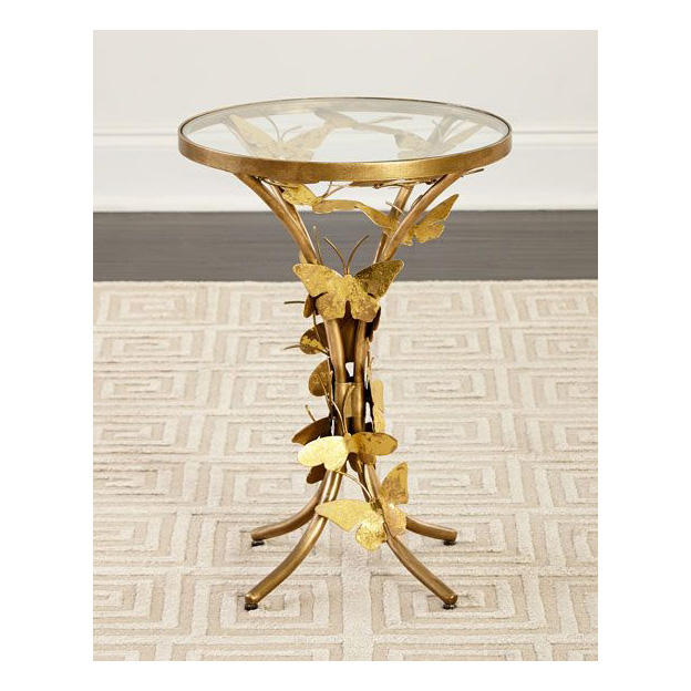 Table d'appoint de luxe en aluminium de designer avec deux étagères en verre, table d'appoint moderne pour salon