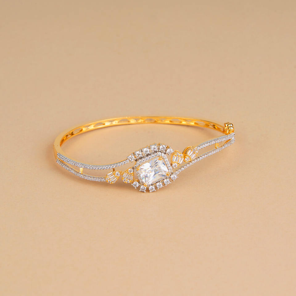 Designer de luxe diamant américain ouvrable CZ Kada bijoux en laiton de haute qualité avec placage à deux tons
