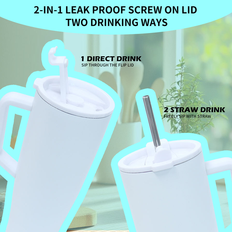 Gobelet de voyage réutilisable de créateur de luxe sans Bpa avec paille 40 oz, gobelet de voyage à graver sous vide et à sublimation 40 oz en acier inoxydable avec poignée