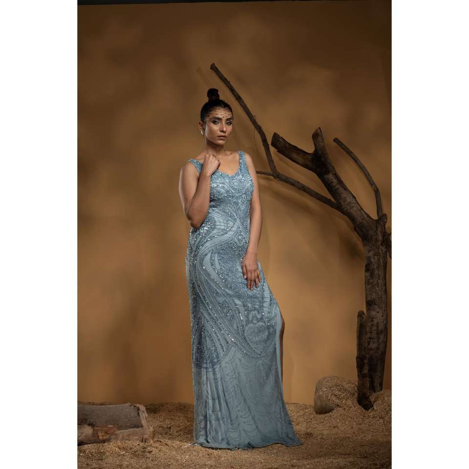 Luxury Designer Evening Gown with Elegant Bodycon Mermaid Dress and Train for Women High-End Events Use from Indian Supplier