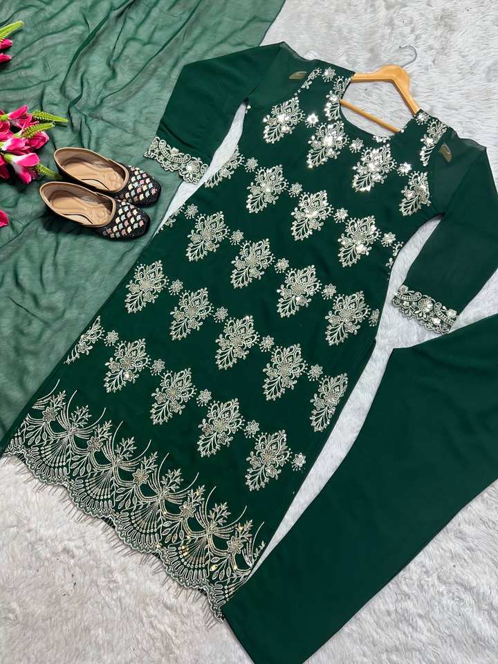 Luxury Designer Faux Georgette Salwar Kameez Suit Purt Faux Embroidery & Sequin Work Ready to Wear for Wedding & Party Functions