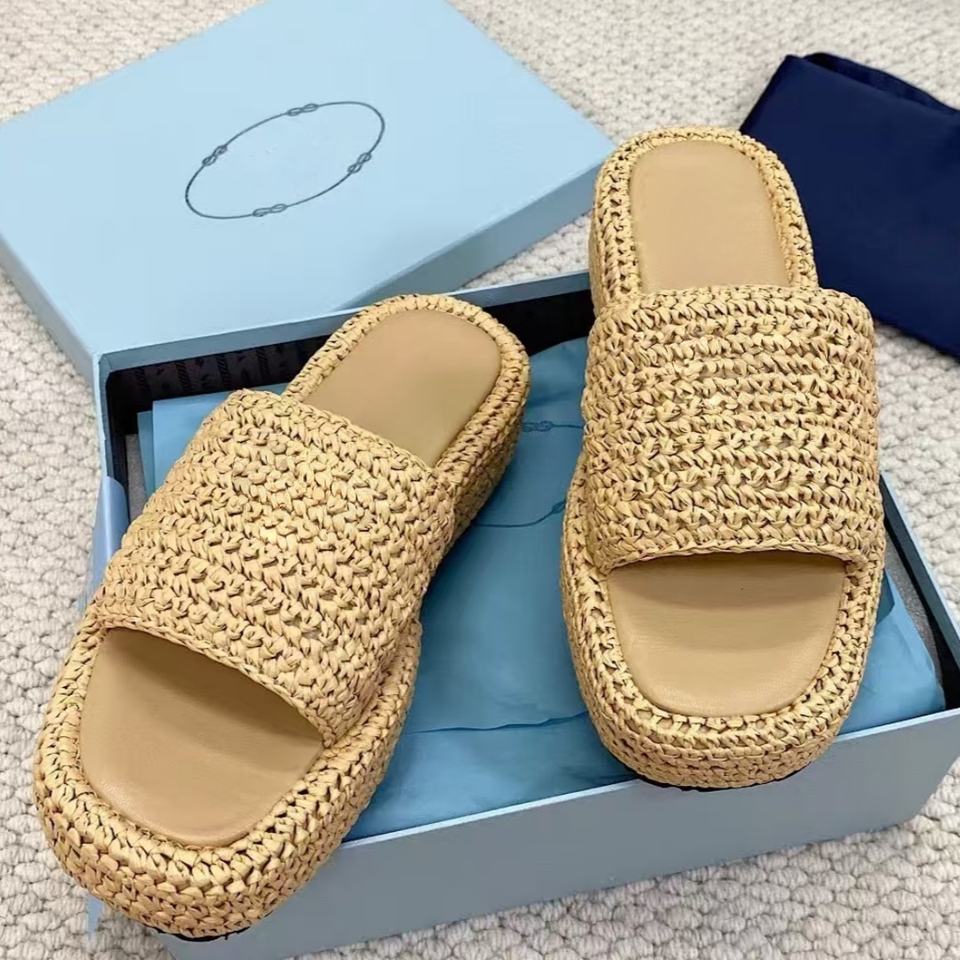 Sandales plates de luxe en paille de créateur, pantoufles de haute qualité pour hommes, pantoufles de sport pour femmes, chaussures de marche décontractées d'extérieur pour hommes et femmes