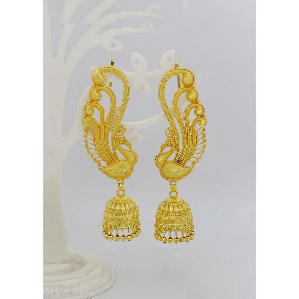 Luxury Designer Gold Plated Full Ear Cuff Earrings Floral Pattern Long Jumkha Earrings for Indian Bengali Style Women Earrings