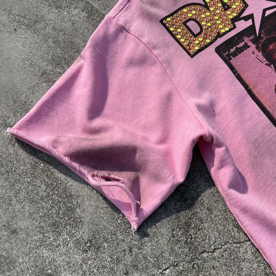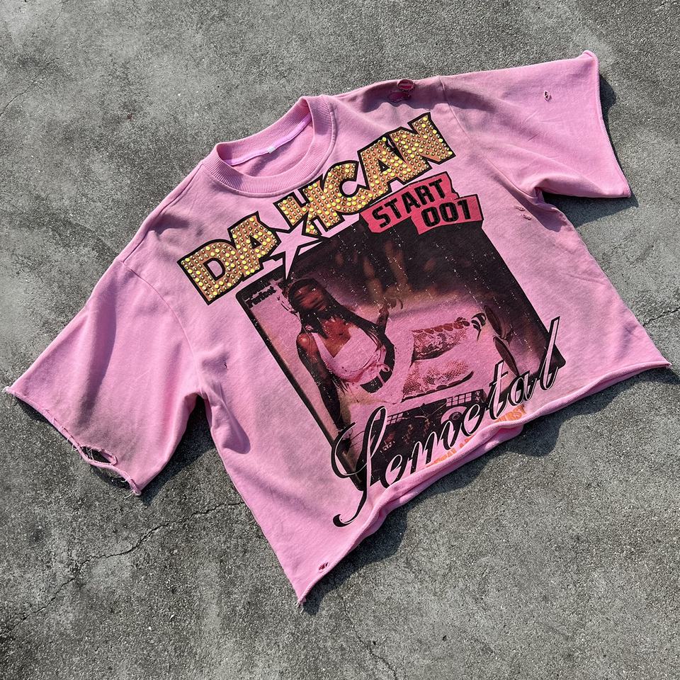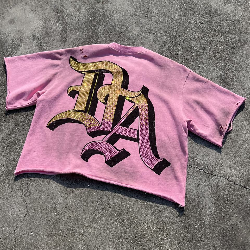 T-shirt de luxe pour homme, col rond, déchiré, avec strass personnalisés, motif graphique vieilli, coupe courte et carrée, effet délavé vintage