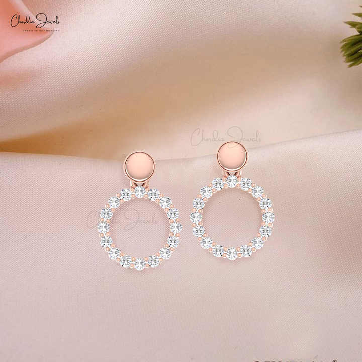 Luxury Designer Open Circle Drop Earrings 14k Solid Gold Natural 0.5 CTW White Diamond Women Earrings Quality Wholesale Supplier