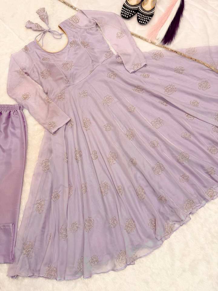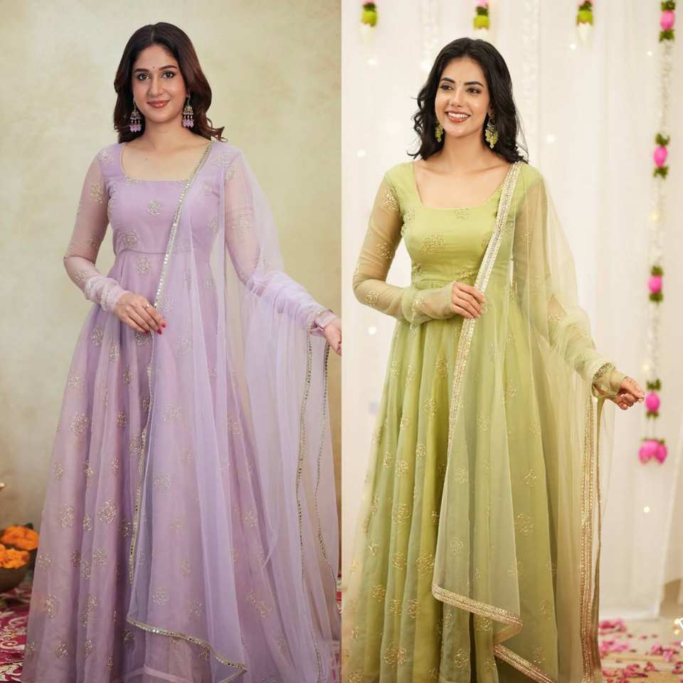 Robe Anarkali de créateur de luxe, broderie de fils violet clair et vert clair, tenue de soirée au meilleur prix