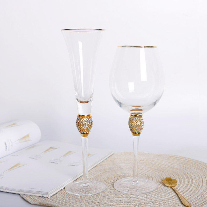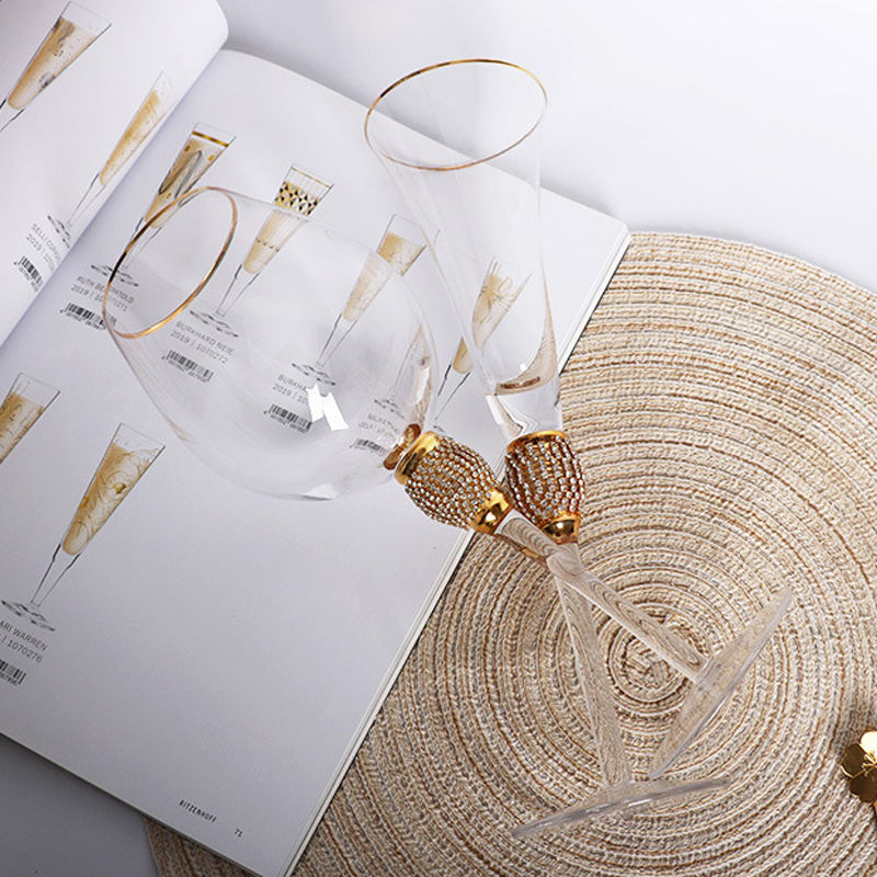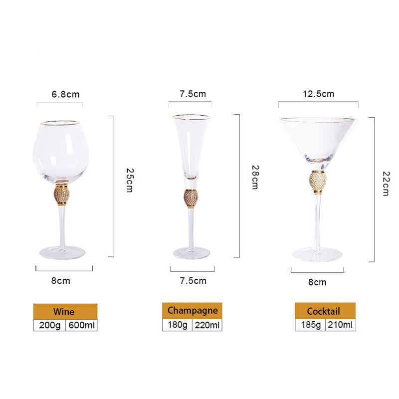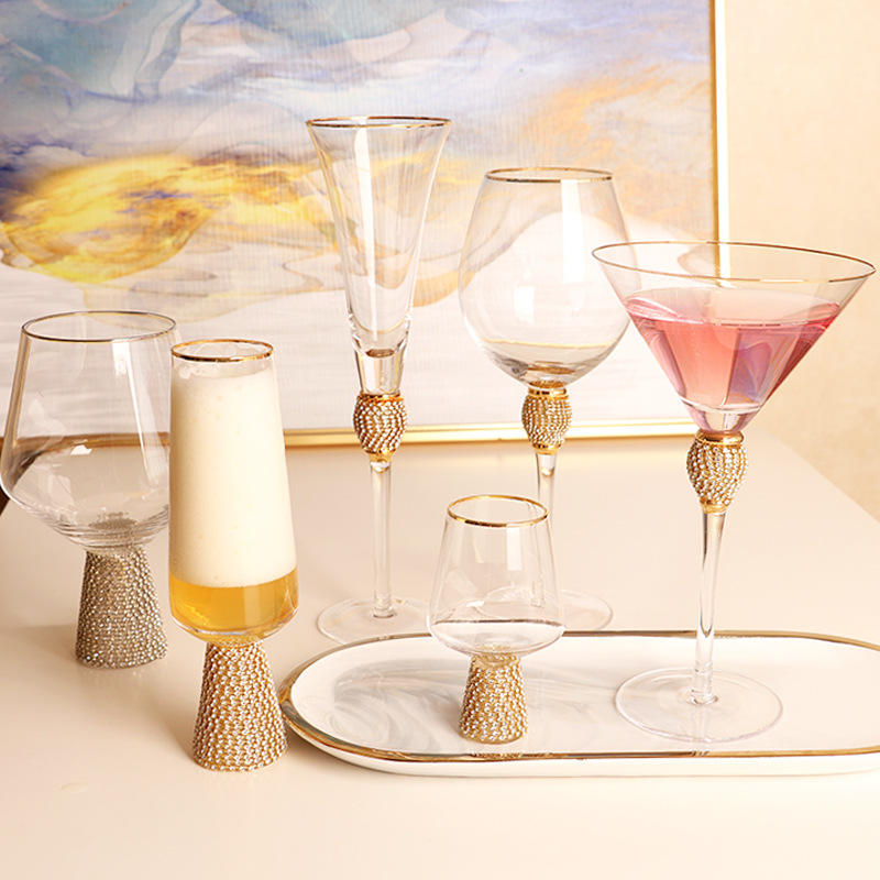 Base de boule de diamant de luxe fait à la main incrustation de cristal de diamant verre à vin rouge flûtes à champagne verre à cocktail tasse en verre de crème glacée