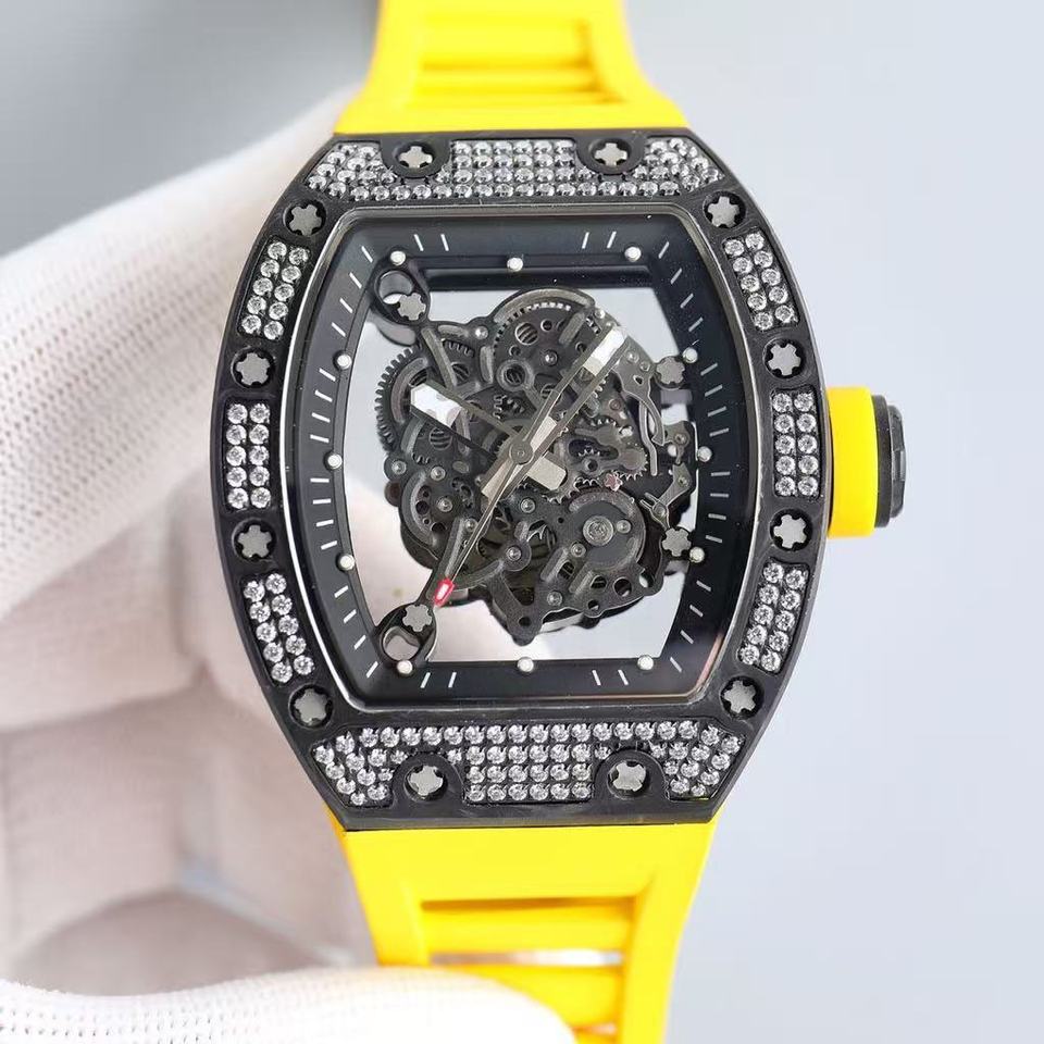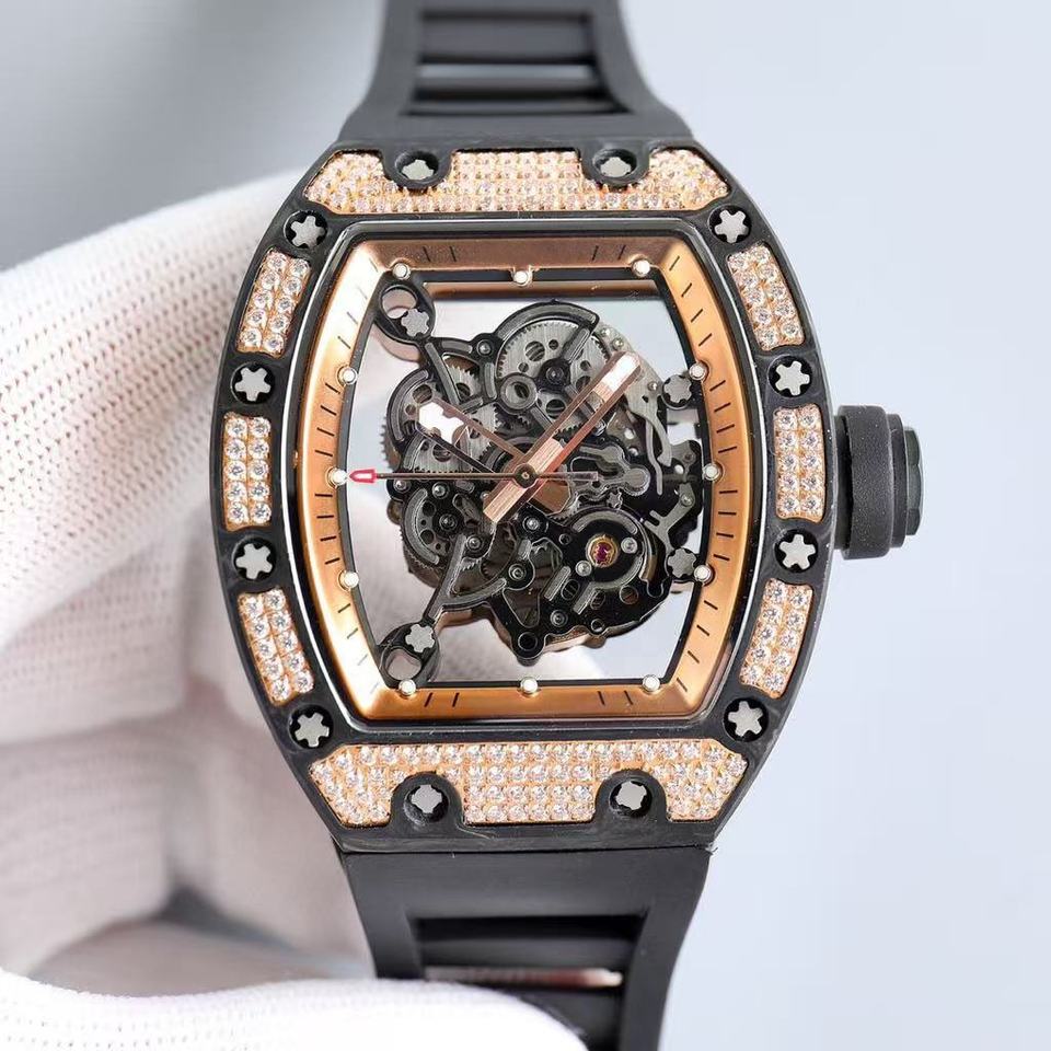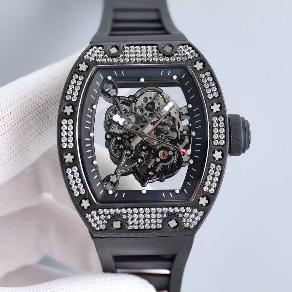 Montre mécanique tonneau de luxe pour homme avec cadran ajouré incrusté de diamants 055, montre de sport en fibre de carbone NTPT, design tendance