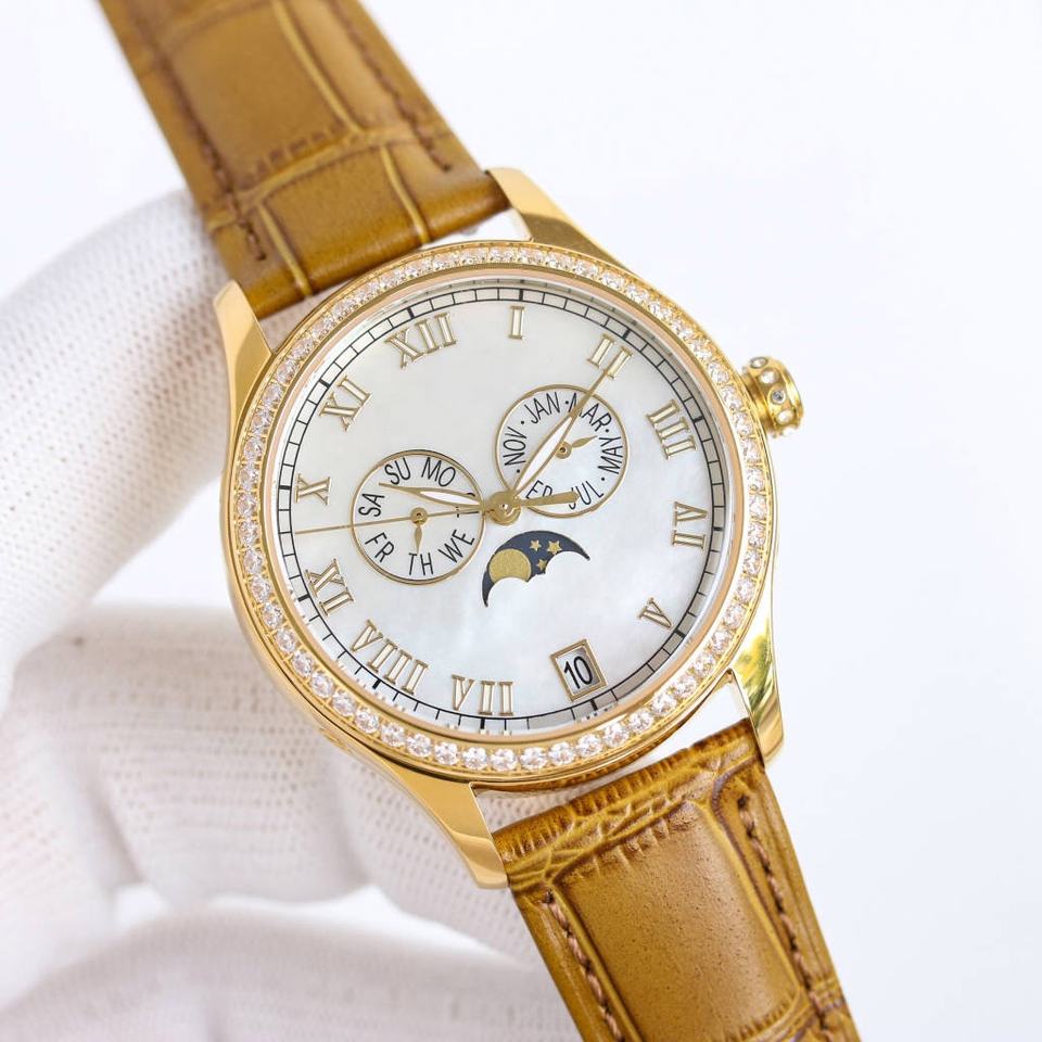 Montre mécanique automatique en or rose avec lunette sertie de diamants de luxe, affichage multifonctionnel, montre pour homme de haute qualité