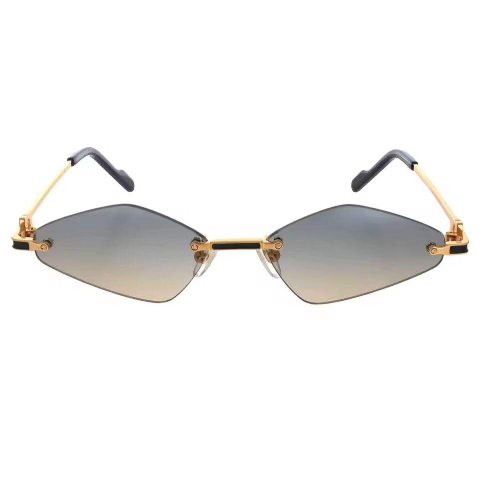 Lunettes de soleil de luxe sans monture en forme de diamant pour hommes et femmes, monture en métal doré, verres dégradés UV400, lunettes de mode