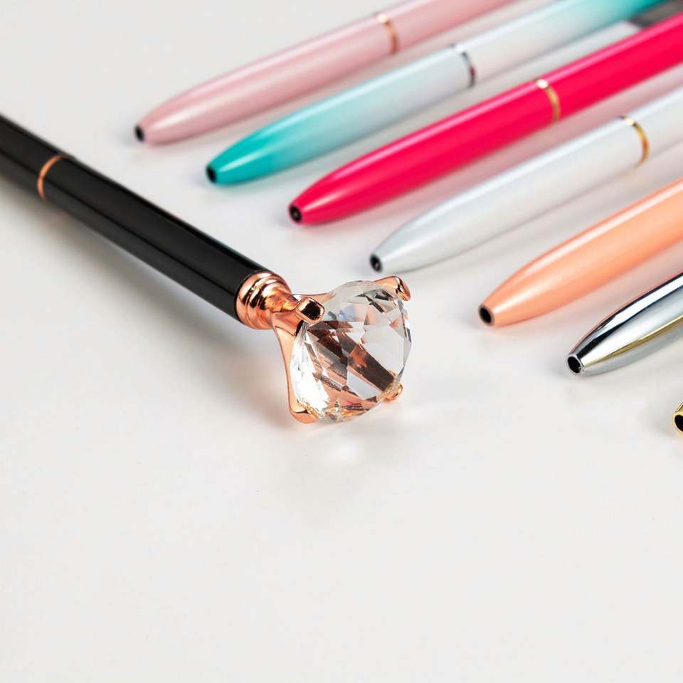 Stylo bille de luxe en métal avec diamant sur le dessus - Cadeaux promotionnels créatifs pour événements d'entreprise