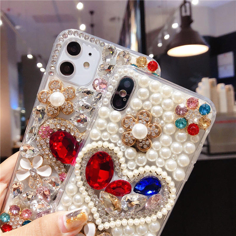 Nom du produit:Étui de téléphone en forme de cœur serti de diamants avec cordon