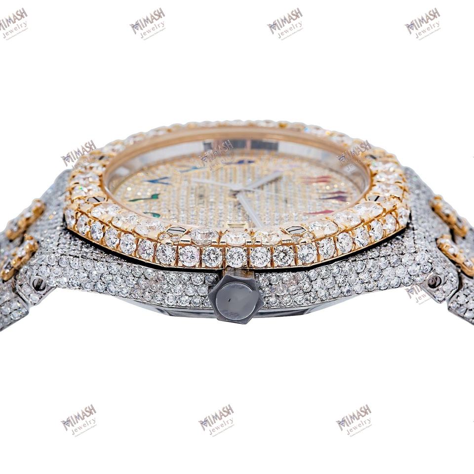 Montre automatique de luxe incrustée de diamants avec chiffres arabes colorés et accents d'or Montre élégante et audacieuse