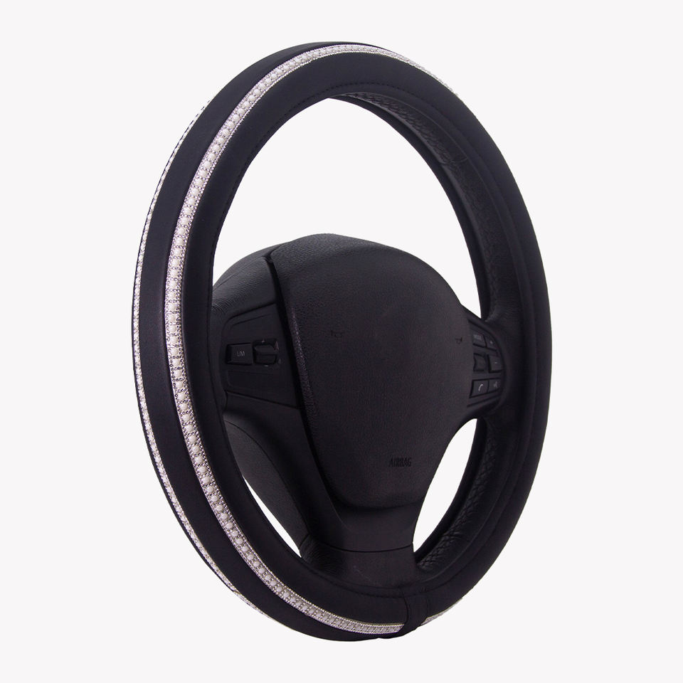 Housse de volant de luxe à double rangée de strass, accessoires intérieurs de voiture universels en cristal scintillant
