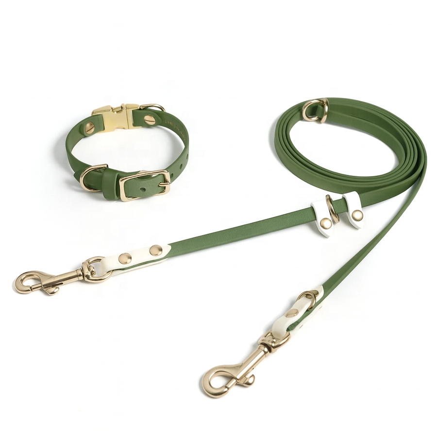 Ensemble collier et laisse pour chien de luxe, durable, imperméable, couleurs personnalisées, collier et laisse en PVC avec boucle en métal robuste