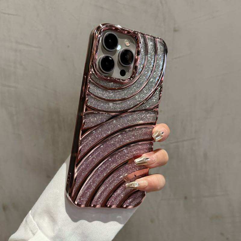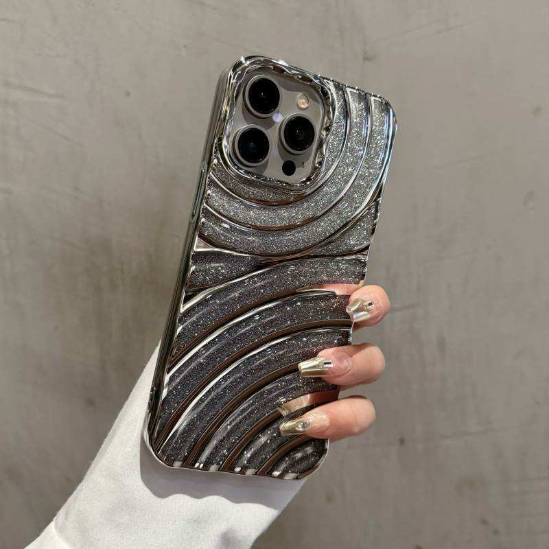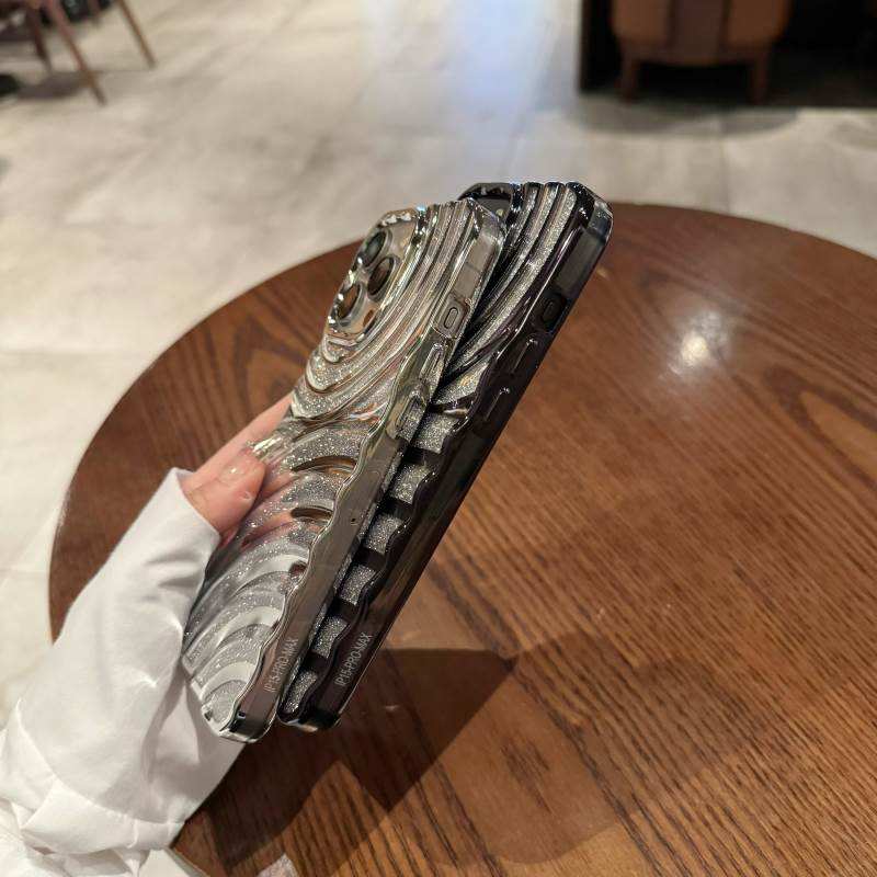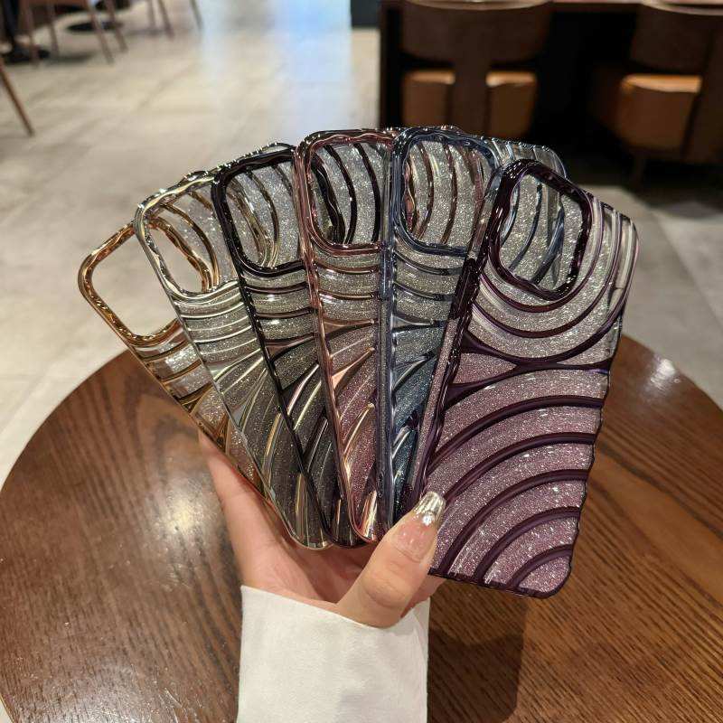 Étui de téléphone antichoc en TPU avec effet d'ondulation de l'eau et paillettes électro-plaquées de luxe, compatible avec les modèles 16, 15, 11, 12, 13, 14 Pro Max Plus, coque transparente