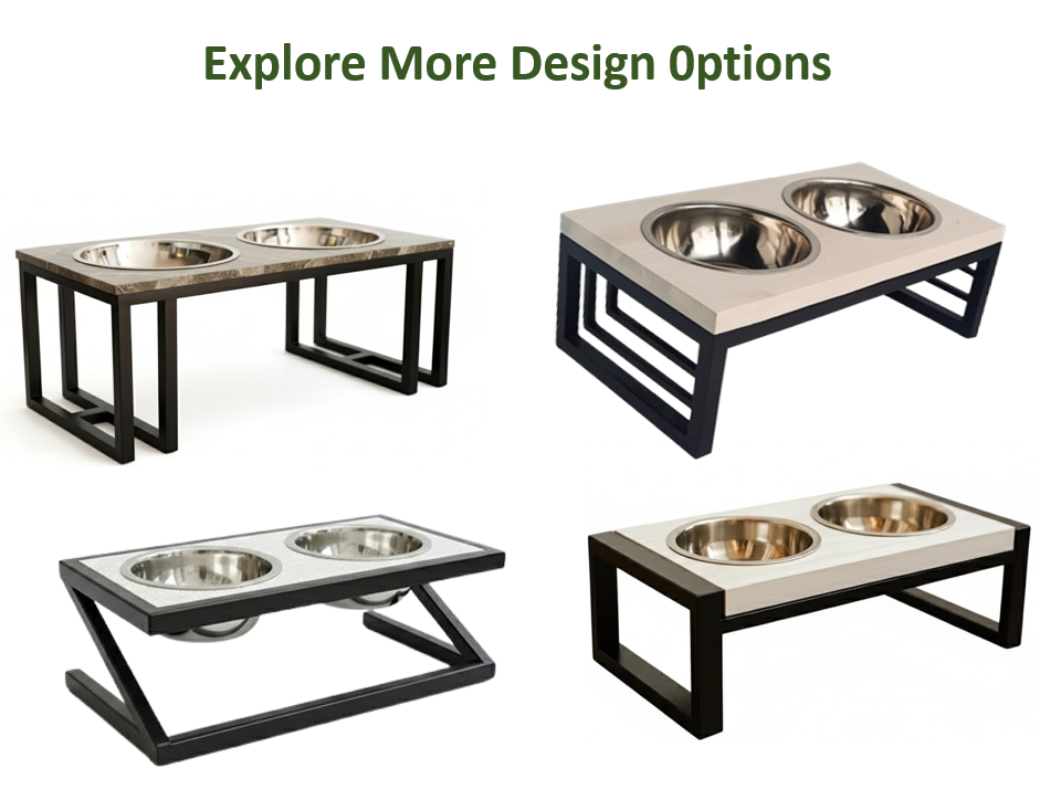 Gamelle double en acier inoxydable avec revêtement en poudre de luxe surélevée pour chiens et chats avec pieds en métal | Meubles pour animaux de compagnie