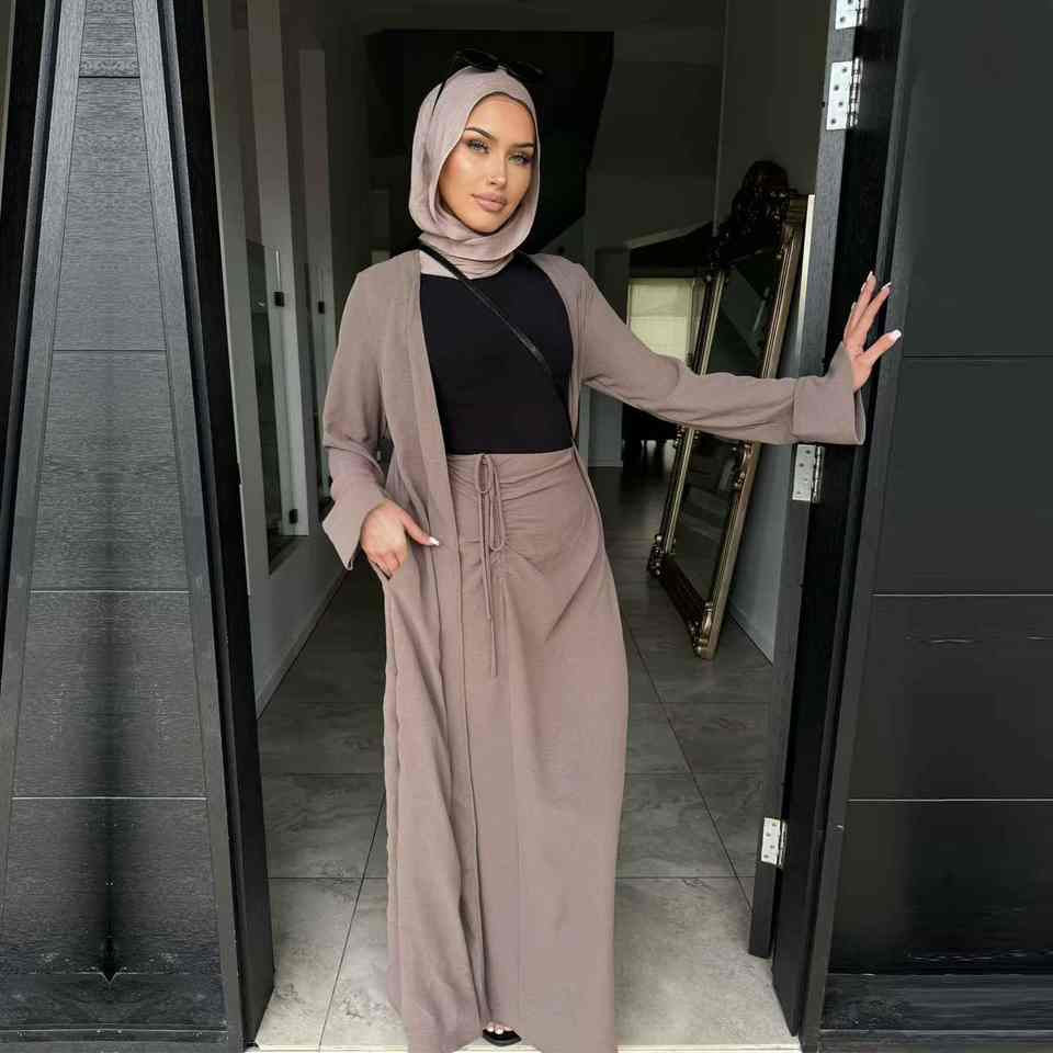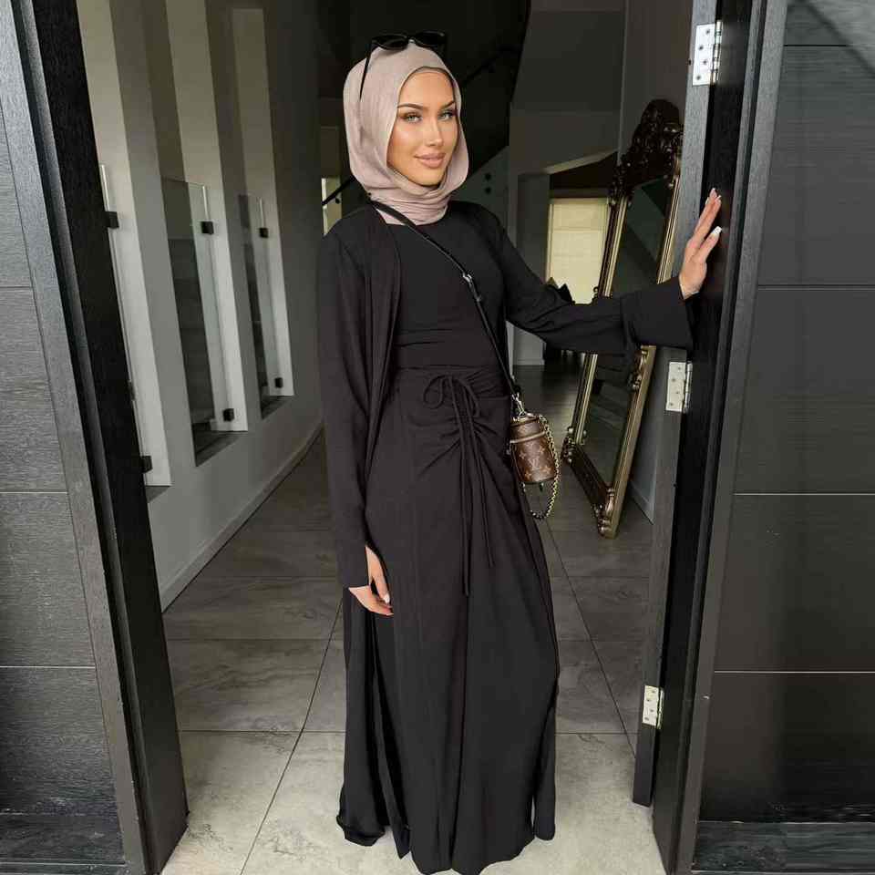 Abaya Moderne de Luxe Brodé de Perles et Strass Thermocollants pour Femmes Musulmanes – Élégante, Style Dubaï, Ouverte sur le Devant, Modeste, Islamique, Décontractée, Longueur Ras du Sol