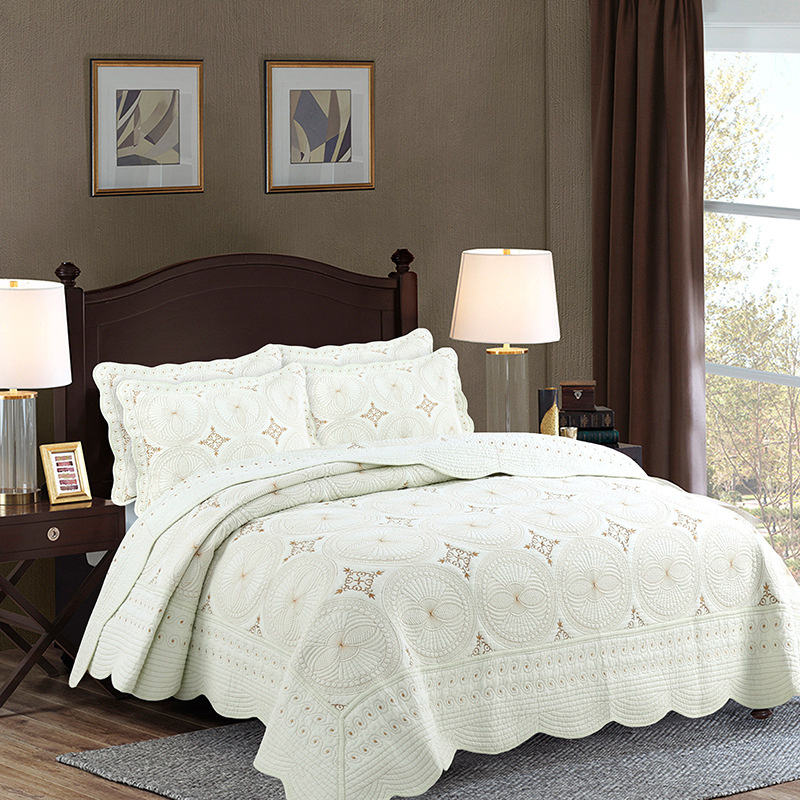 Parure de lit matelassée blanche de luxe avec broderie, modèle Florence, couvre-lit matelassé pour chambre à coucher