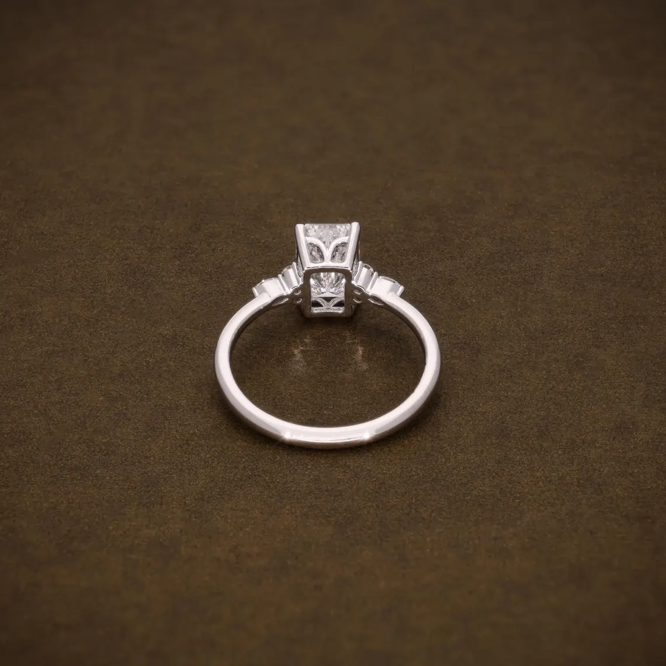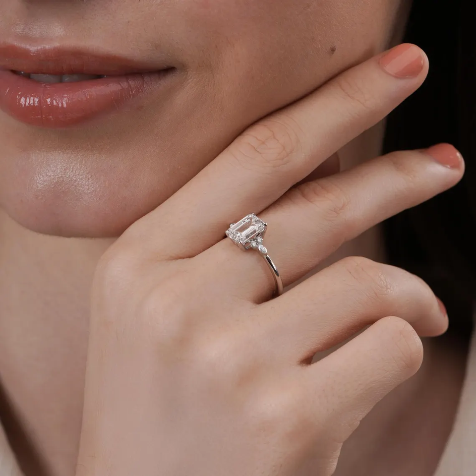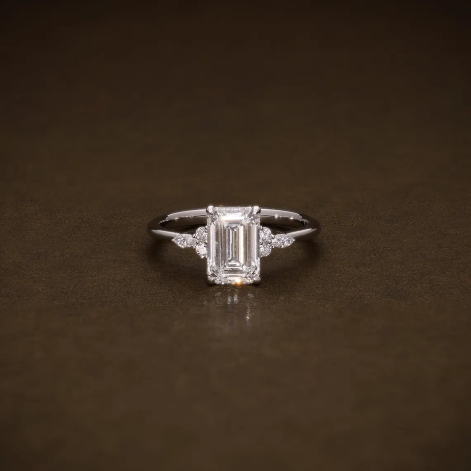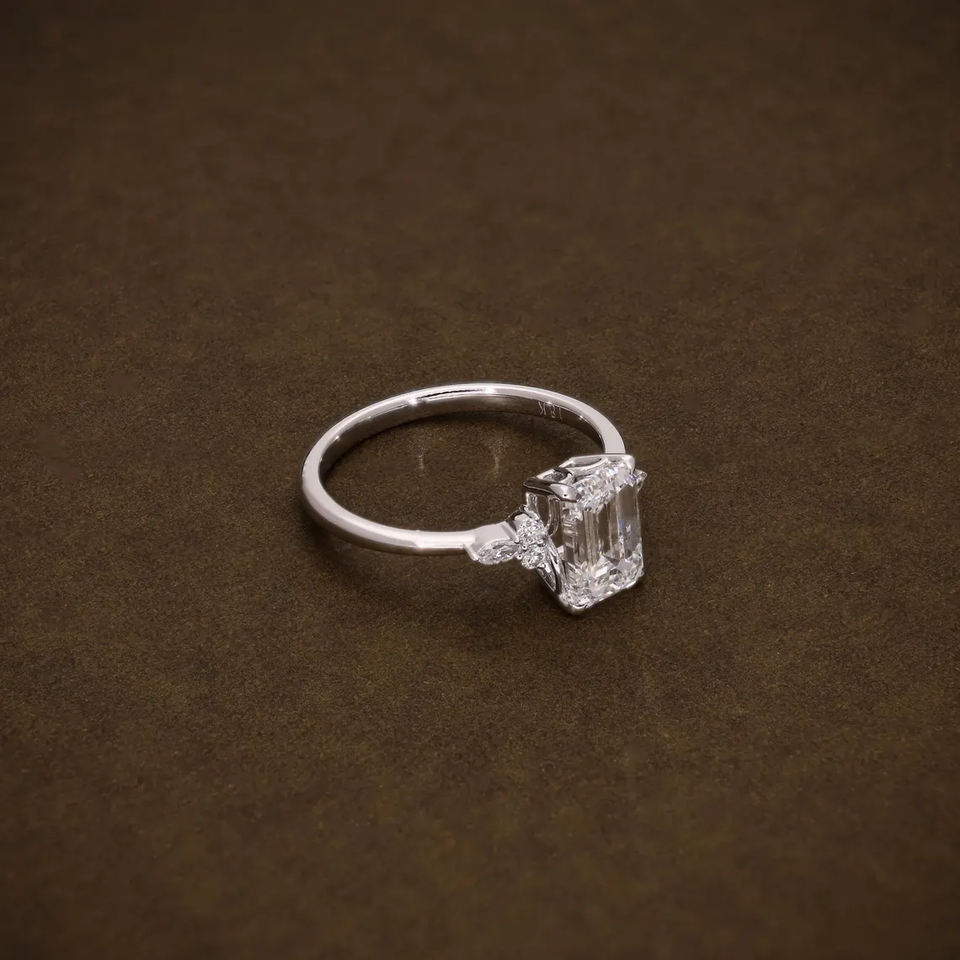 Bague de fiançailles de luxe en or massif avec diamant de laboratoire taille émeraude et pierres latérales marquise et rondes, bijoux fins